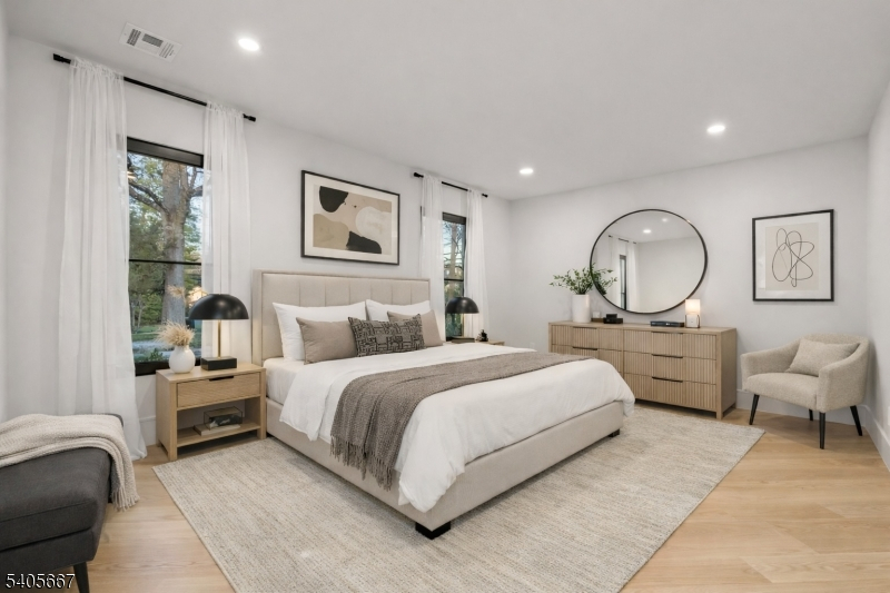 EXCEPTIONAL NEWLY RE-BUILT home on one of Short Hills' most coveted addresses, offering 6 oversized bedrooms and 6.5 baths across three beautifully finished levels, on an oversized, level lot. The home makes a striking first impression with its modern, maintenance-free facade, standing-seam metal roof accents, and curated architectural lighting. A dramatic double-height foyer with sculptural Sonneman chandelier introduces interiors defined by a refined "quiet luxury aesthetic, wide-plank oak floors, and a cohesive modern neutral palette. Bathed in natural light, the main level features expansive formal living and dining rooms, a spectacular great room with an indoor-outdoor fireplace, and oversized windows. The chef's kitchen is a true showpiece, anchored by a waterfall island in Volupia Green quartzite, custom cabinetry, designer appliances and fixtures, and a fully equipped walk-through pantry and prep kitchen. The first floor also features a private bedroom suite, a mudroom, and a powder room. Upstairs, every bedroom is en-suite, including a serene primary suite with walk-in closets, spa bath finished in Venetian Vendome stone, and a flexible sitting room or office. The finished lower level features a large entertainment lounge with a wet bar, a bedroom, a full bath, a playroom, and bonus spaces. Flat backyard with stone patio and room for pool. Oversized two-car garage, brand-new roof, and mechanical systems. A rare opportunity to own a design-driven, turnkey residence.