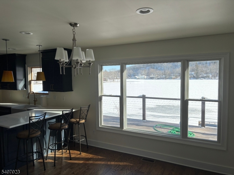Far from the maddening crowd! This totally renovated, like-new, upscale 2-bedroom Lake House features generous living space with its own dock, deck, and patio perfect for year-round enjoyment. The modern kitchen is equipped with stainless steel appliances and features a large breakfast bar, plenty of cabinets and quartz countertops. The living room is highlighted by a wood-burning fireplace with stone surround, while the primary bedroom suite offers a full bath, walk-in closet, convenient laundry, and additional space ideal for a home office. Nestled in a peaceful community, Kittiatinny Lake is a private 92-acre lake in Sandyston Township, offering non-motorized boating, fishing for bass and trout, swimming, and hiking. Surrounded by Stokes State Forest and bordering the Appalachian Trail, the setting is both serene and scenic.