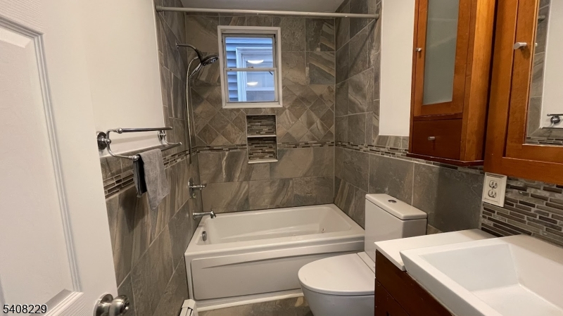 Renovated 2- family centrally located in Kearny. Both units offer a Living room, an Eat-in kitchen, 3 Bedrooms, and a full bath. Beautiful new kitchen with Quartz countertops and ceramic backsplash. New appliances (refrigerator, stove, exhaust fan). New floors, and ( AS A BONUS), a full finished basement with a full bath, an extra room for storage, and a huge recreation room. 2 laundry hook-ups. Big backyard. Newer roofs. Public parking across the street. Separated utilities. Close to public transportation, restaurants and shopping.
