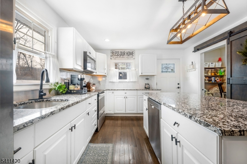Renovated 3BR, 2BA expanded ranch on nearly an acre offering privacy, flexibility, and convenience with potential for an in-law suite. Set on a deep, tree-lined lot with seasonal views of the Musconetcong River, this home provides peaceful surroundings just minutes from schools, shopping, and commuter routes. Hardwood floors flow through the open-concept main level, highlighted by a stunning kitchen with granite countertops, stainless steel appliances, oversized center island, and walk-in pantry with a custom coffee station. Finished walkout basement includes a full bath and flexible space ideal for a family room, office, gym, or guest suite. Outdoor living features expansive decks, a private patio, a built-in fire pit, and generous yard space. Parking for 4+ vehicles. A berm was installed following a prior hurricane-related claim; since installation, there has been no water intrusion. Passing Septic (2021) and Passing Well Water Test (2025). From lush summer greenery to peaceful winter views, this home offers beauty in every season. Seller open to reasonable concessions (assist or rate buydown considered with strong offers). Possible USDA 0% down financing (buyer to confirm eligibility). Showings Saturdays & Sundays only.