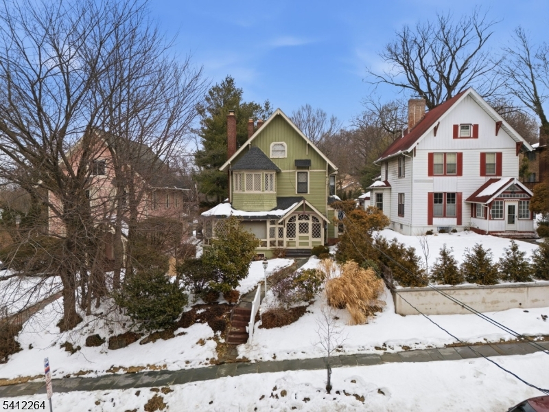 Welcome to Palisade Manor, where Gingerbread Victorian charm and modern updates blend across three full levels of living, creating a timeless space for warmth and entertaining just steps from downtown Englewood - one of NJ's most sought-after towns. An enclosed wraparound porch sets the tone, leading into a light-filled interior with soaring ceilings, intricate moldings, original hardwood floors, and 3 wood-burning fireplaces. The main level flows seamlessly from the living room to the formal dining room and into a private study with French doors, offering an open yet functional layout. The renovated chef's kitchen features cherry cabinetry, granite countertops, stainless steel appliances, dual sinks, a center island, and a secondary butler's staircase for added convenience. The second floor boasts a primary suite with fireplace, bay window sitting area, and spa-like bath with tub and separate shower, while additional generously sized bedrooms include an enclosed Florida room off the 3rd bedroom above the rear deck. The third floor provides flexible space for bedrooms, office, or gym. A full, clean, unfinished walkout basement offers storage and future potential. Modern comforts include a 2-year-old water heater, multi-zone central A/C, natural gas heat, public water and sewer. Private rear driveway parking off Hillside Ave., close proximity to downtown shops, dining, and parks, etc. Bus to NYC directly in front of house on Palisade make this the ultimate commuter's dream!