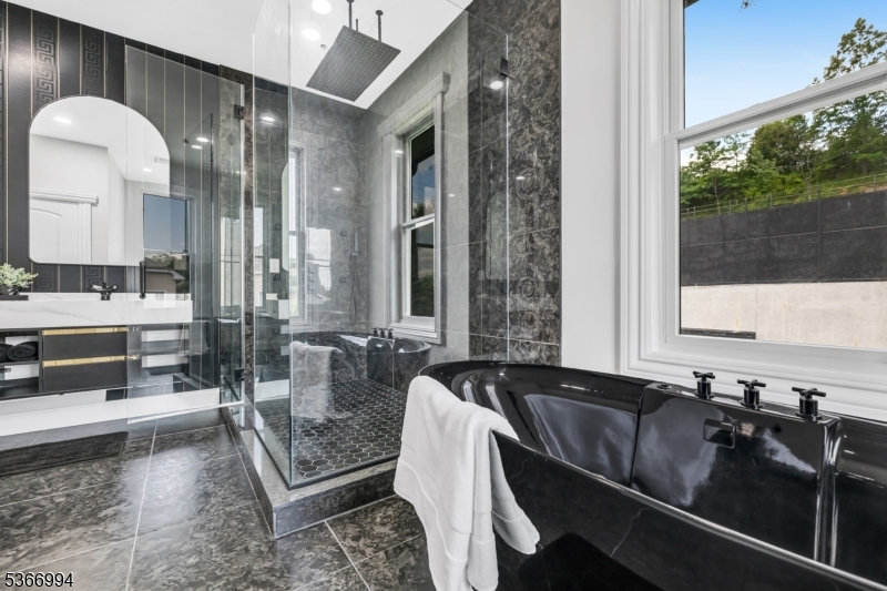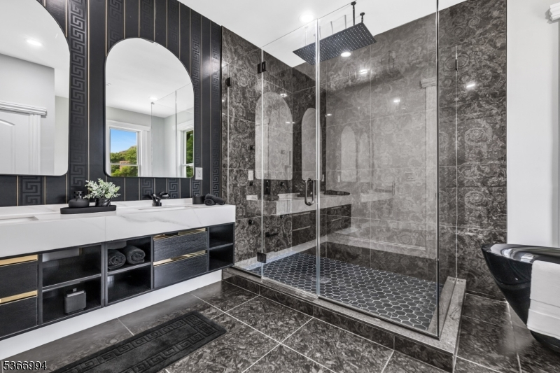 An exceptional brand-new custom estate offering 6,000+ square feet of refined luxury across all levels. Absolutely beautiful interior and exterior spaces, perfectly positioned on an expansive tiered property, this residence delivers breathtaking panoramic views and a true resort-style lifestyle. The private backyard is a showpiece, featuring an in-ground pool and spa, waterfall, patio, and a full sports court designed for both basketball and pickleball/tennis. Every detail of the home has been thoughtfully curated to balance sophisticated design with everyday comfort, highlighted by a dramatic floating staircase, custom millwork, designer lighting, and multiple balconies capturing sweeping views. An open-concept layout creates seamless flow throughout the main living spaces, anchored by a stunning chef's kitchen with premium finishes and effortless connection to elegant living and dining areas. The upper level features a magnificent primary suite complete with two oversized walk-in closets, private balcony access, and a spa-like bath with soaking tub, double vanity, and glass-enclosed shower. The fully finished lower level offers exceptional bonus living space with a media area, wet bar, expansive rec area, and full bath. Additional highlights include a 3 car garage and smart home technology. A rare opportunity to own a truly one-of-a-kind new construction home in Totowa, combining striking architecture, luxury amenities, and an unparalleled setting.