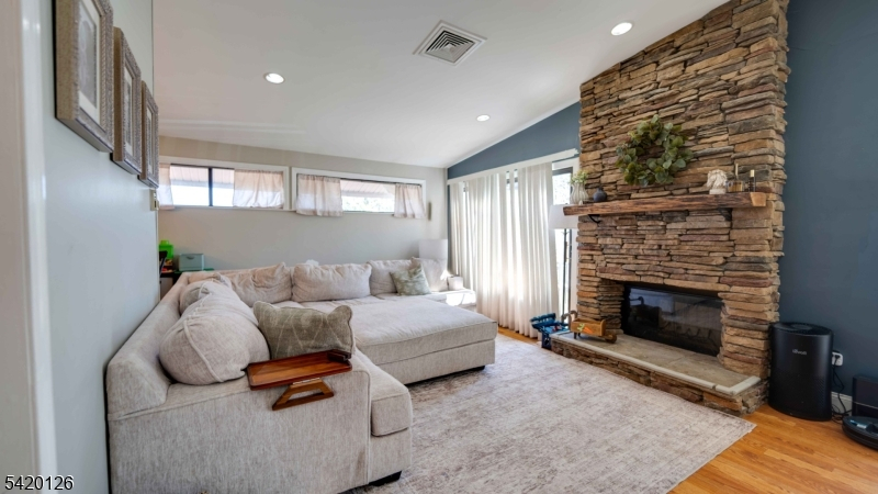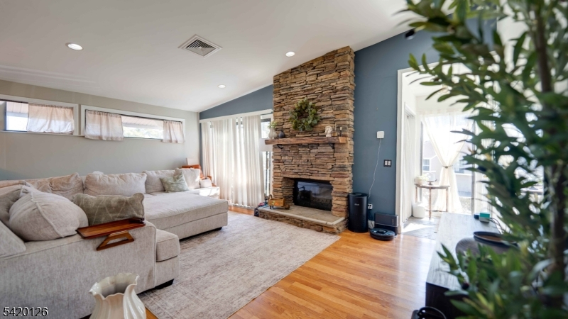 2-BR upper end unit, bright, spacious layout with gleaming hardwood floors throughout the living room, dining room, both bedrooms, and hallway. Vaulted ceilings in the living room, formal dining room, and kitchen create an open, airy feel. No pets and no garage with this rental. Tenant cannot use fire place.