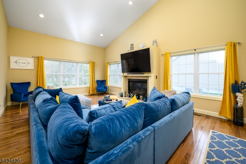 Welcome to 32 Pleasant Plains Rd, a spacious and well-appointed home offering approx. 3,123 sq ft of living space across a versatile and thoughtfully designed layout. The exterior combines stone and siding for timeless curb appeal, while the interior opens with a dramatic 2-story foyer and elegant staircase. The main level features formal living and dining rooms, a large family room with fireplace and soaring ceiling, and an open kitchen with white cabinetry, dark countertops, tiled backsplash, center island, and adjoining breakfast area. A first-floor bedroom and full bath provide added flexibility for guests, work, or extended living needs. Upstairs, the generous primary suite includes space for a sitting area, two walk-in closets, and a private bath with dual vanities, soaking tub, and glass-enclosed shower. Three additional bedrooms, additional baths, and a second-floor laundry room complete the upper level. Additional features include hardwood flooring in select rooms, a full basement offering storage or future finishing potential, an attached 2-car garage, a rear deck, and open backyard space. Well-proportioned rooms, inviting gathering areas, and a functional floor plan make this home ideal for everyday living and entertaining.