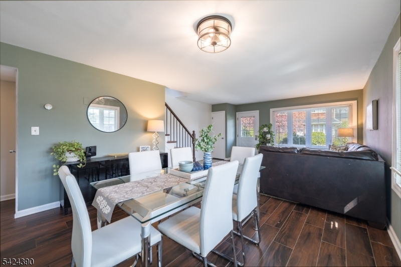 COMMUTER'S DREAM! SUMMIT 2 BED/2.1 BATH TOWNHOUSE STEPS FROM NEW PROVIDENCE TRAIN & KING'S! 777 Springfield is ideally located for getting to work, school, restaurants & shops AND Unit #1 is on the corner facing south, so you'll enjoy lots of natural light on 2 exposures & the privacy of an end unit in a small, friendly complex. Step through a private entry into an open & bright Living/Dining Room boasting multiple large windows on the front & side. Wood-look ceramic tile floors ensure easy maintenance while looking warm & inviting. A convenient pass-through from Kitchen to Dining Area lets the light stream through from front to back. Updated Kitchen includes freshly painted white cabinetry, granite countertops, subway tile backsplash, SS appliances including induction range, microwave hood, fridge & dishwasher. Powder Room & Coat Closet round out this level. Upstairs find new LVP flooring & 2 good-sized bedrooms, each w/ 2 double-door closets, recessed lighting & walls of windows on 2 sides. Primary ensuite has a clean, white tiled tub/shower combo. Nicely updated Full Hall Bath features new vanity & light plus a walk-in shower w/ tile surround & frameless glass enclosure. Linen Closet & primary attic access closet for plenty of storage space! Lower Level offers freshly carpeted & painted finished space w/ window for Rec Room or Home Office! Laundry, a back door & interior access to the Attached Single Car Garage w/ Tesla Charger make modern living easy. Welcome home!